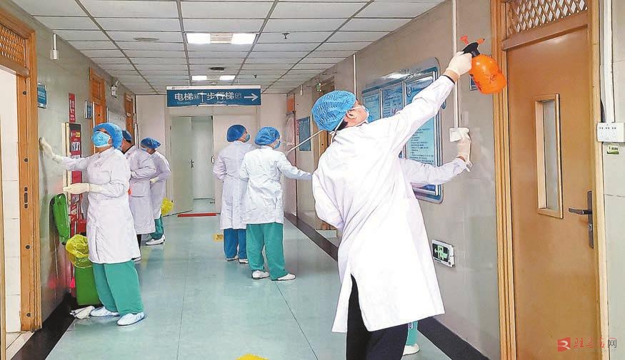 市中心医院对隔离病区进行终末消毒。