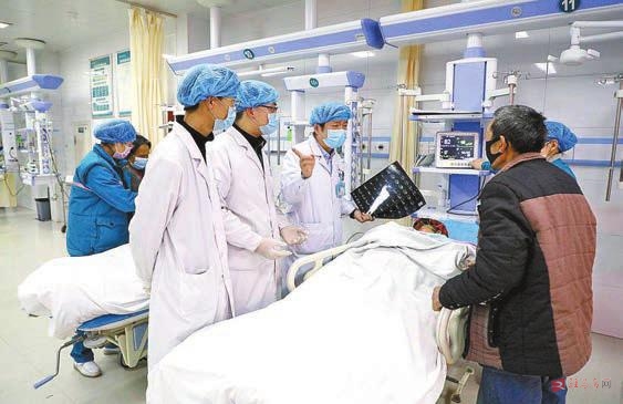 市中心医院急诊科医务人员为患者诊疗。