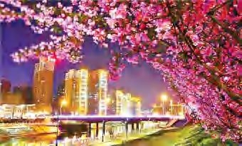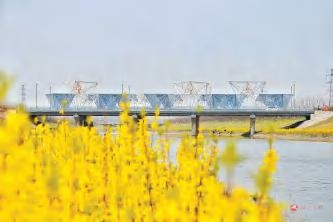 花海映衬下的钻石桥。记者 丁振 摄