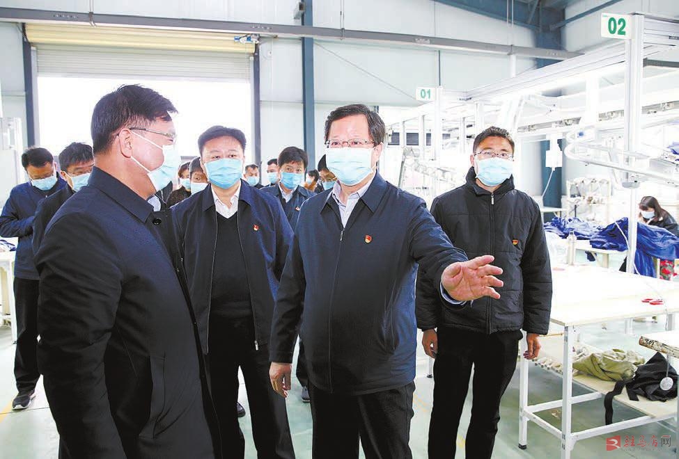 3月27日上午,省委常委、省纪委书记、省监委主任任正晓在上蔡县黄埠镇小王营村的扶贫车间里了解贫困户就业情况。市委书记陈星陪同调研。 记者 弓华静 摄