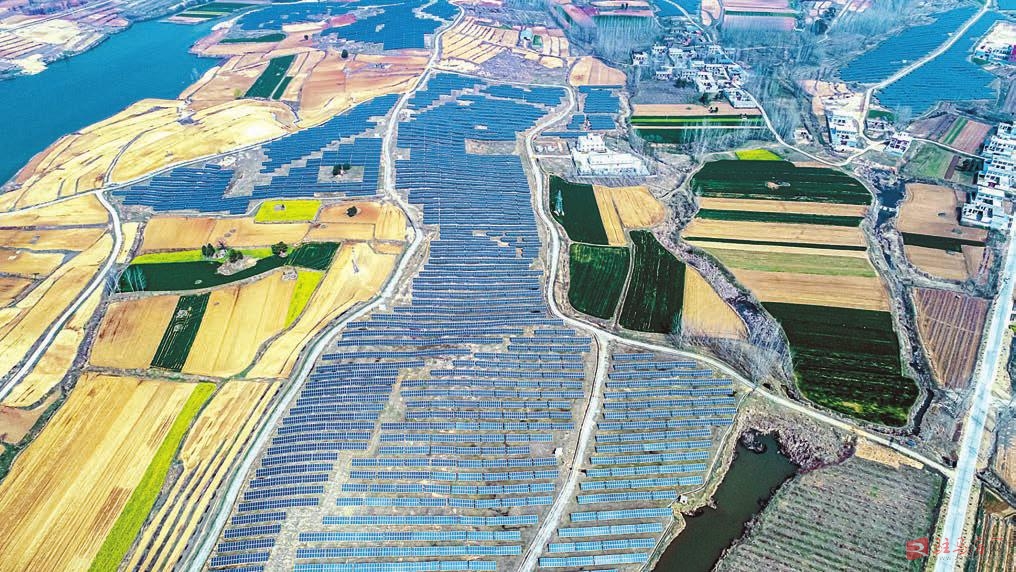在打赢打好脱贫攻坚的战役中,泌阳县始终把产业作为脱贫的治本之策,采取财政直投方式,投入资金2.03亿元,建成村级光伏扶贫电站106个,投资1500万元入股到辖区20兆瓦集中电站,所得收益全部用于贫困村发展和贫困群众增收,带动6664户15257人贫困户人均年增收1000元。图为泌阳县官庄镇秦冲村委光伏发电带贫基地鸟瞰图。