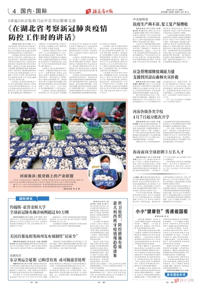 《在湖北省考察新冠肺炎疫情防控工作时的讲话》