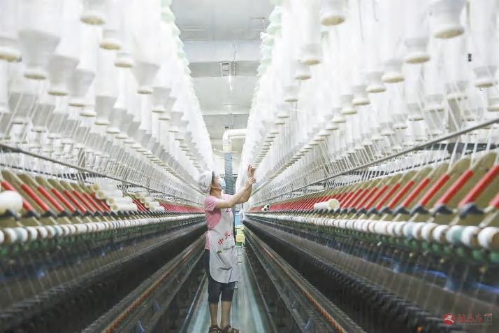 近日,在驻马店南方中天纺织集团有限公司车间,工人在认真生产。该企业在做好疫情防控的同时,从3月初逐步复工,目前已全面复工。该企业2008年改制成立,现已形成年产10万锭纺纱、2000万米布的大型二类纺织企业。