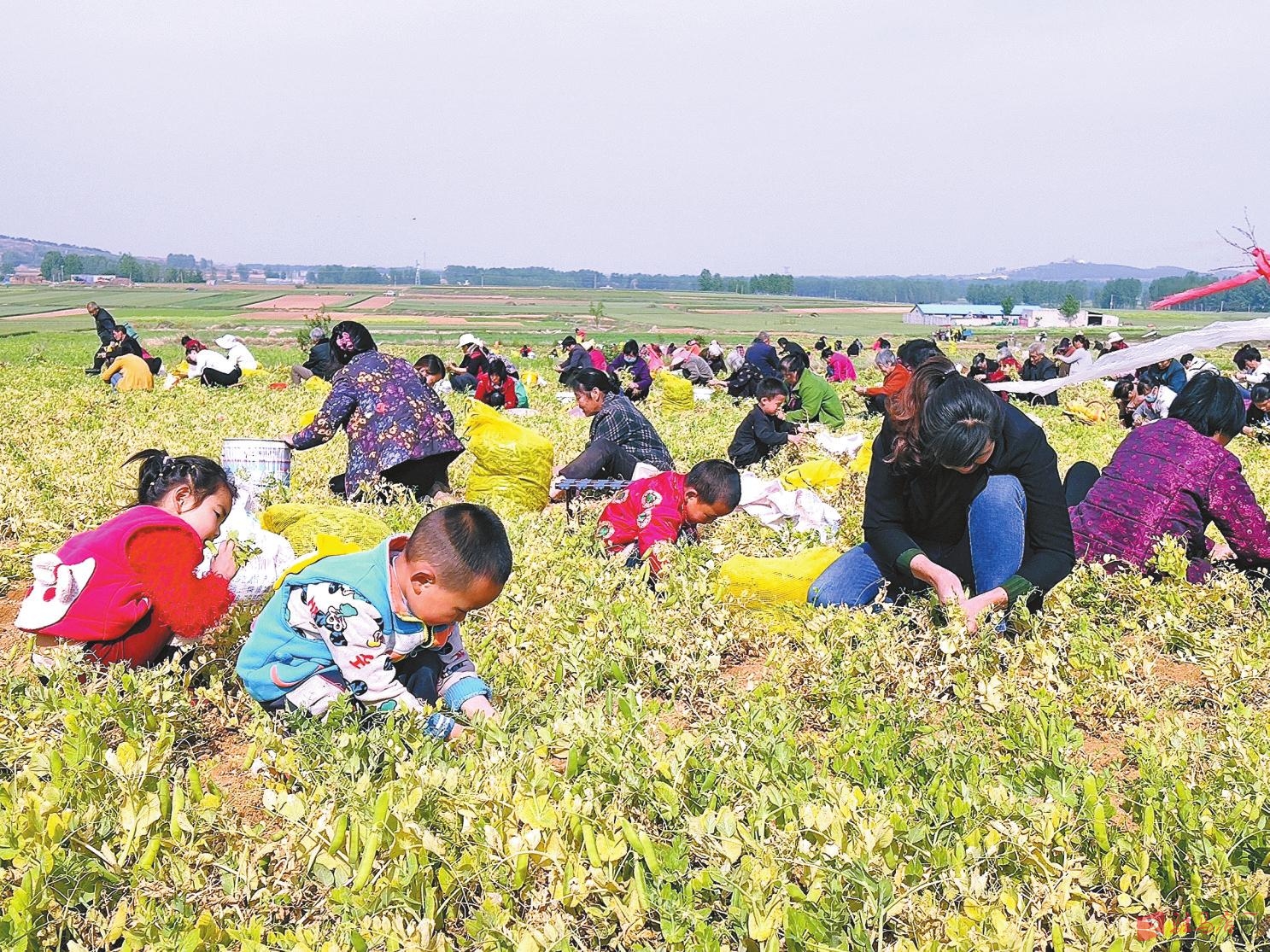 村里有一部分土地在丘陵之上,土壤相对贫瘠,没有灌溉水源,种植小麦产量较低。大部分村民只种了一季花生,其余时间闲置。经过村委班子和驻村第一书记张伯杰的多方调研,确立了豌豆角种植意向。“今年种植200多亩豌豆角,明年将继续扩大种植面积。这对于村民而言,就是增加了一季的收入,村里下一步还将安装大型地磅,定点收购,带动周边广大农户增产增收。”张伯杰说。