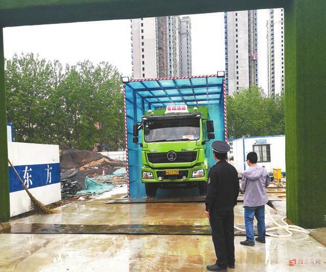 源头管控,上路前对渣土车进行清洗。