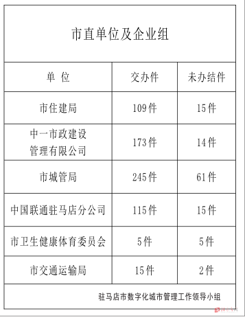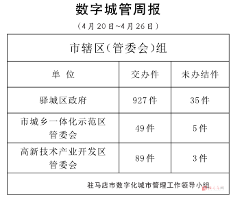 驻马店市数字化城市管理案件办理后进单位周通报