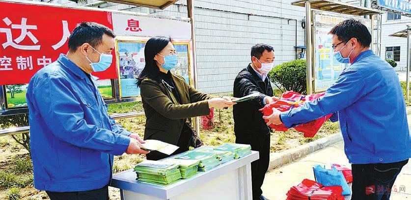 4月27日,市卫健体委职业健康科工作人员在河南天方药业股份有限公司活动现场发放宣传品。
