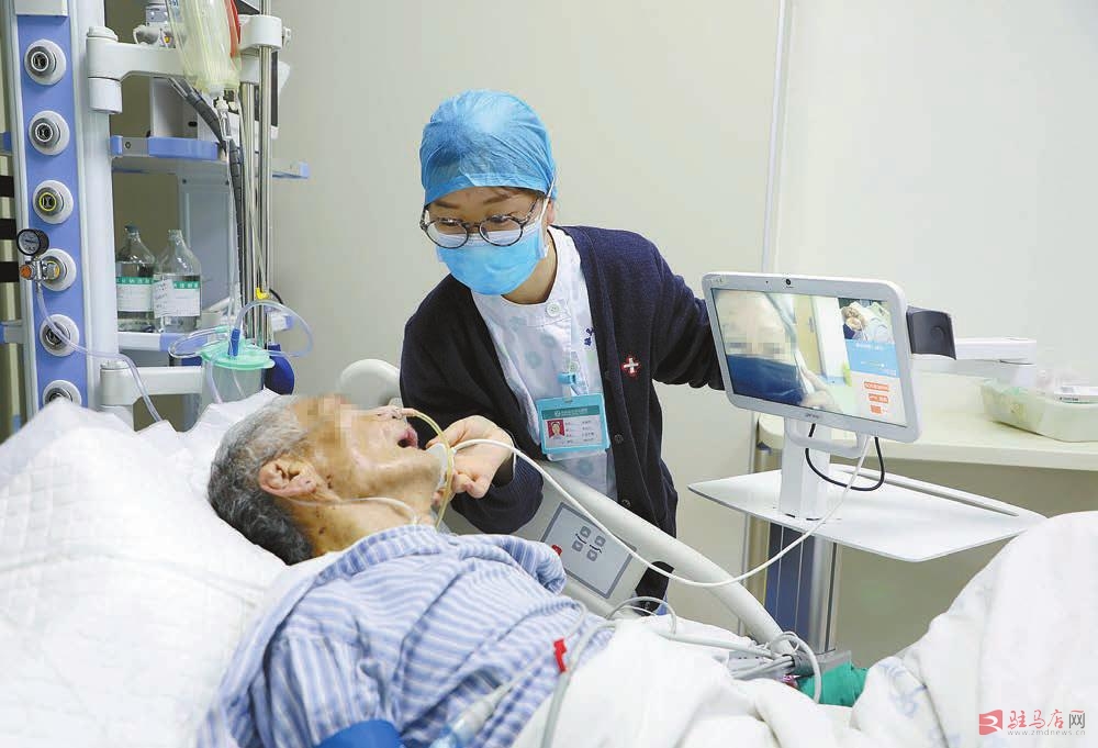 “爷爷今天上午病情好转,清醒多了,他中午还给我们唱歌呢!”4月28日,驻马店市中心医院呼吸重症医学科护士周淑玲正在通过视频探视系统和病人家属沟通。