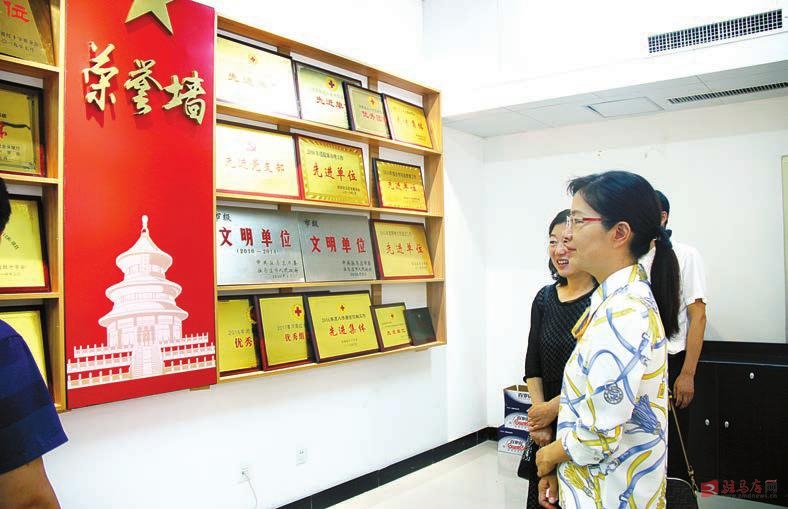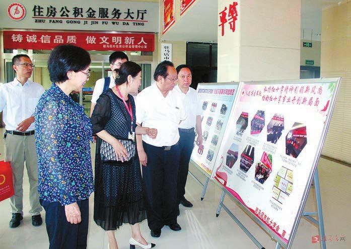 省红十字会党组书记、专职副会长万英(左一)调研我市红十字会机关建设。