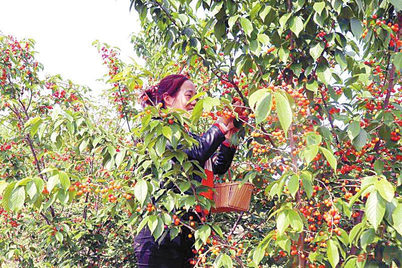 眼下,泌阳县春水镇贾庄村樱桃熟了,形色诱人,处处洋溢着村民幸福的笑声。许多本地村民和附近城市游客来到村里采摘鲜果,庭院经济效益凸显,成了农民致富增收的好路子。