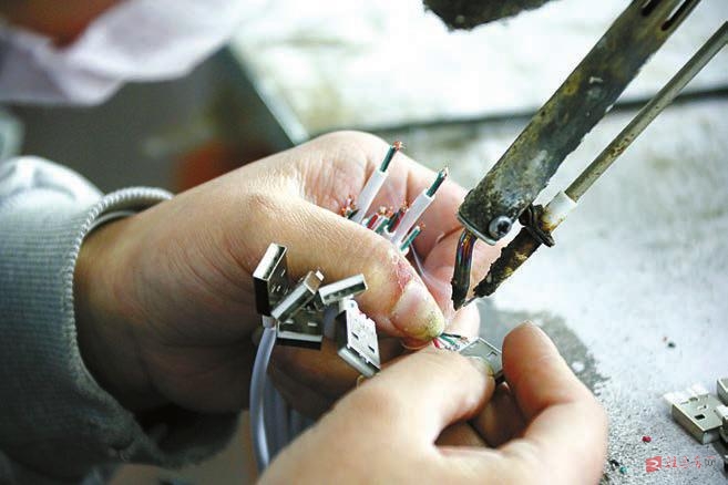 该厂主要生产手机数据线,年产500多万条,安置当地贫困户20多人就业。
