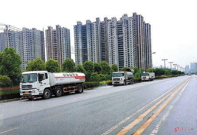 喷雾除尘车全天作业。