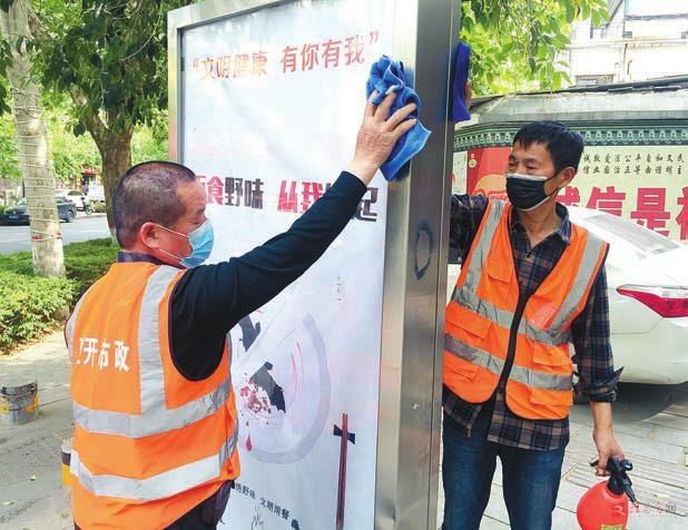 清擦道路两侧宣传橱窗。