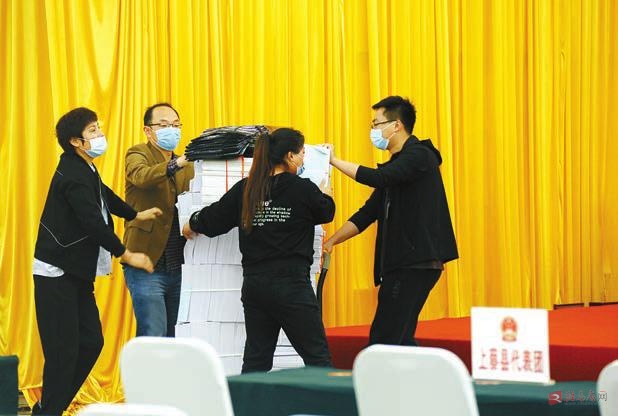 准备材料。 记者 李旻 摄