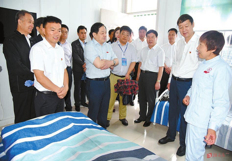 全国推动因残致贫家庭脱贫攻坚暨失能贫困重度残疾人照护和托养工作现场 会与会领导和嘉宾在上蔡县邵店镇考察我市重度残疾人集中托养模式。