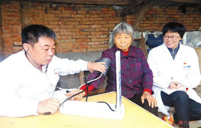 省脱贫攻坚创新奖获得者王铁珍医生为贫困户测量血压。