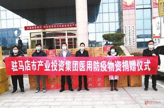 市产业投资集团牢记国有企业的使命担当,认真履行社会责任,积极向驻马店市慈善总会捐赠医用防疫物资,包括外科医用口罩2万个、鞋套3万个、医用84消毒液100瓶,用于支持我市各县区疫情防控工作。