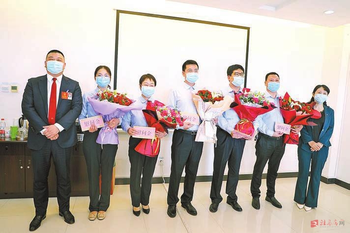 省人大代表、河南首善、鹏宇集团总裁朱新红给五位勇士送去鲜花和慰问金。