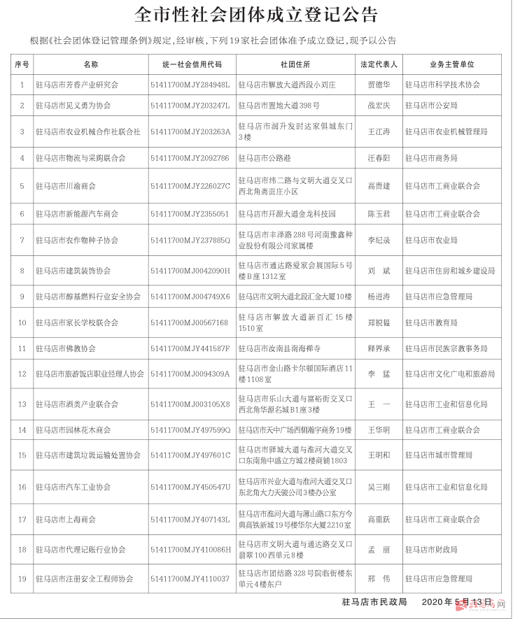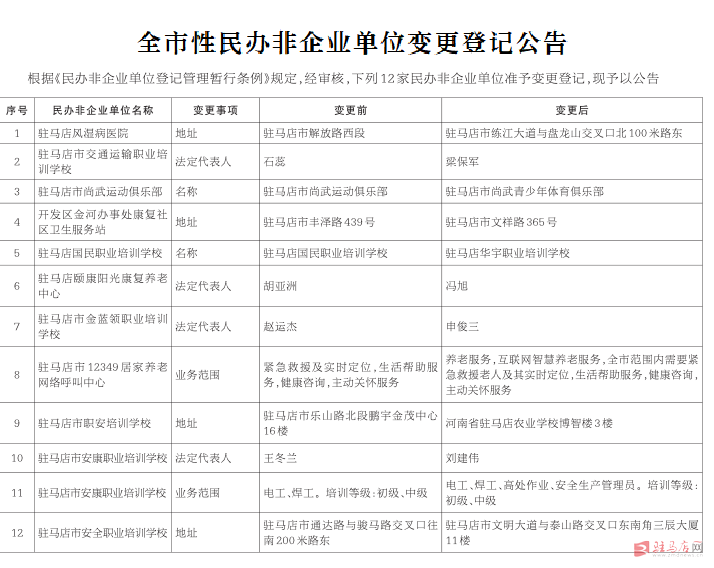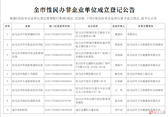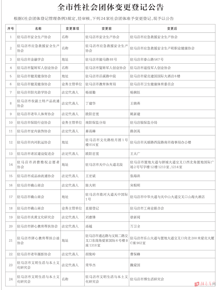 驻马店市民政局公告