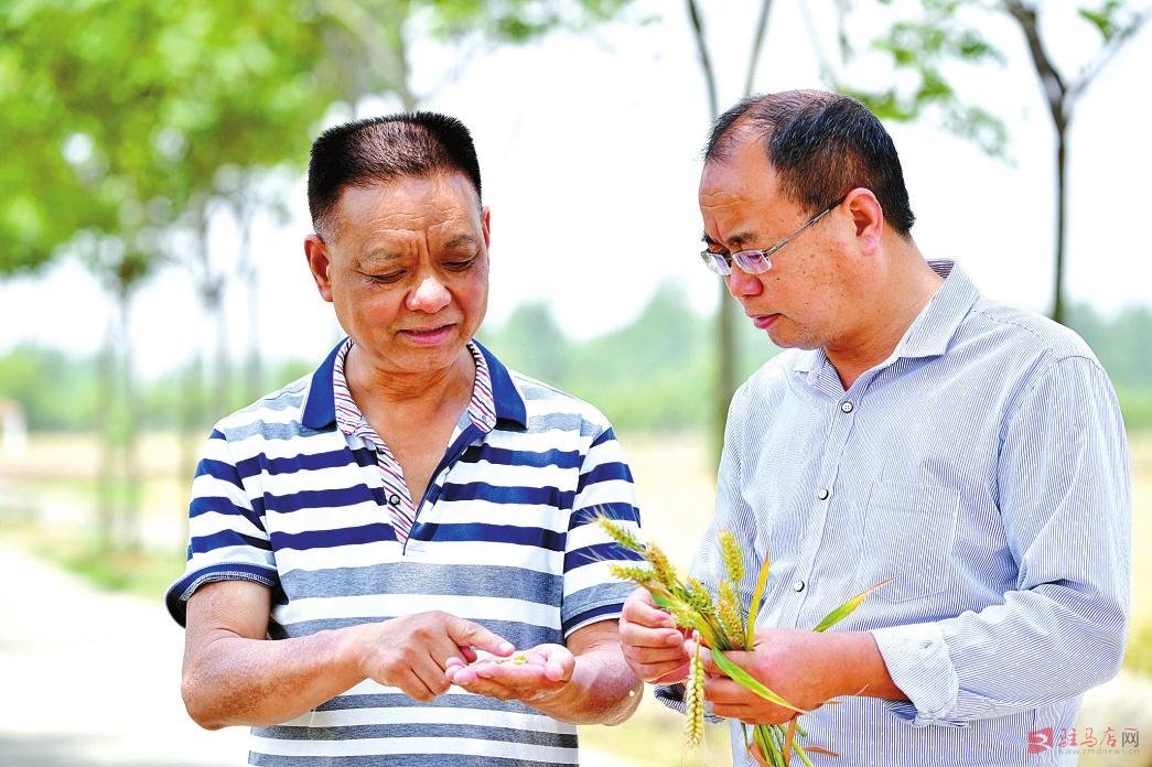 5月19日,在河南省邓州市腰店镇黄营村,邓州市农业技术推广中心专家查看小麦长势。