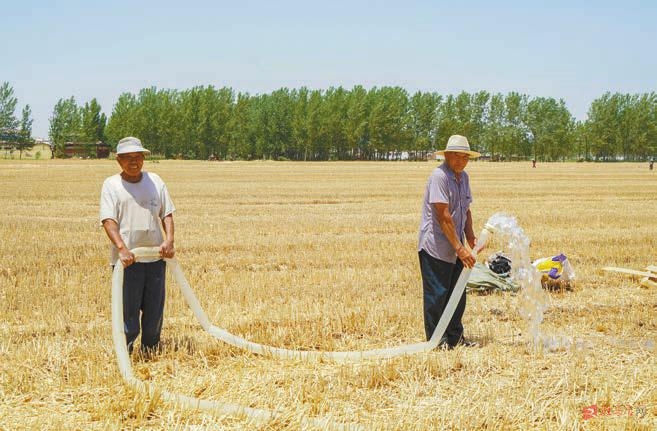 村民在抗旱浇地。