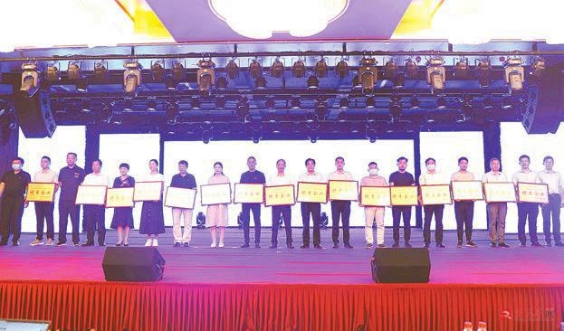 市委统战部有关领导和王海洲上台共同为15家获奖企业代表及15名先进个人代表颁发奖牌。