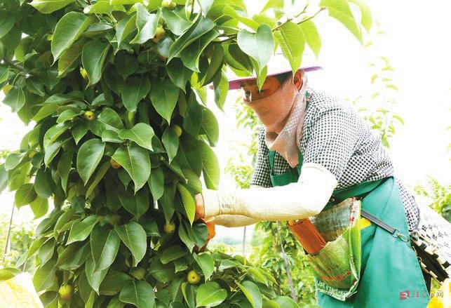 6月6日,果农在驿城区板桥镇通源农民专业种植合作社梨园里劳作。