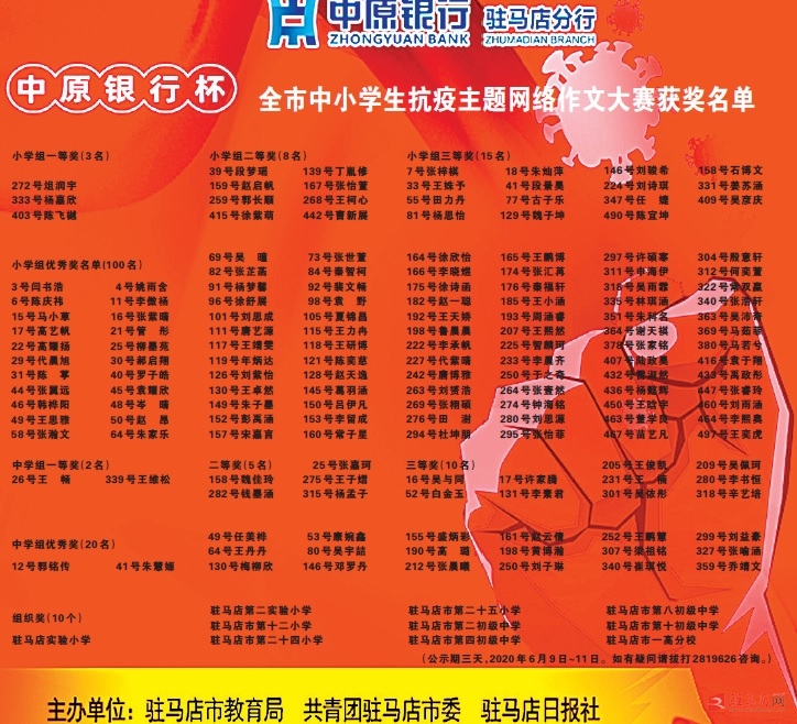 “中原银行杯”全市中小学生抗疫主题网络作文大赛圆满收官