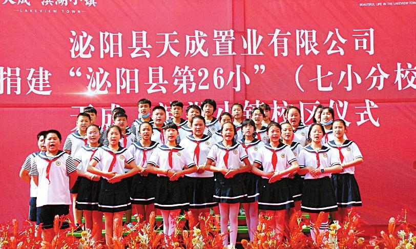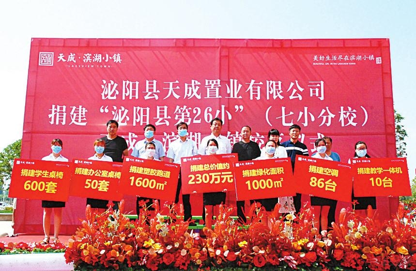 仲夏之际,泌阳县天成置业有限公司捐建“泌阳县第26小”(7小分校)天成·滨湖小镇校区活动仪式在天成·滨湖小镇营销中心广场举行。