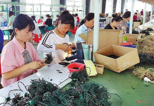近日,在正阳县合兴灯饰企业生产车间内,工人在忙生产。该企业吸纳附近村民150人就业,其中贫困村民23人,主要生产灯饰产品,产品远销海外,年利润约300万美元。