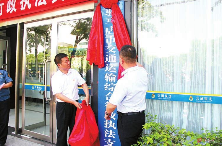 相关领导为市交通运输综合行政执法支队揭牌。