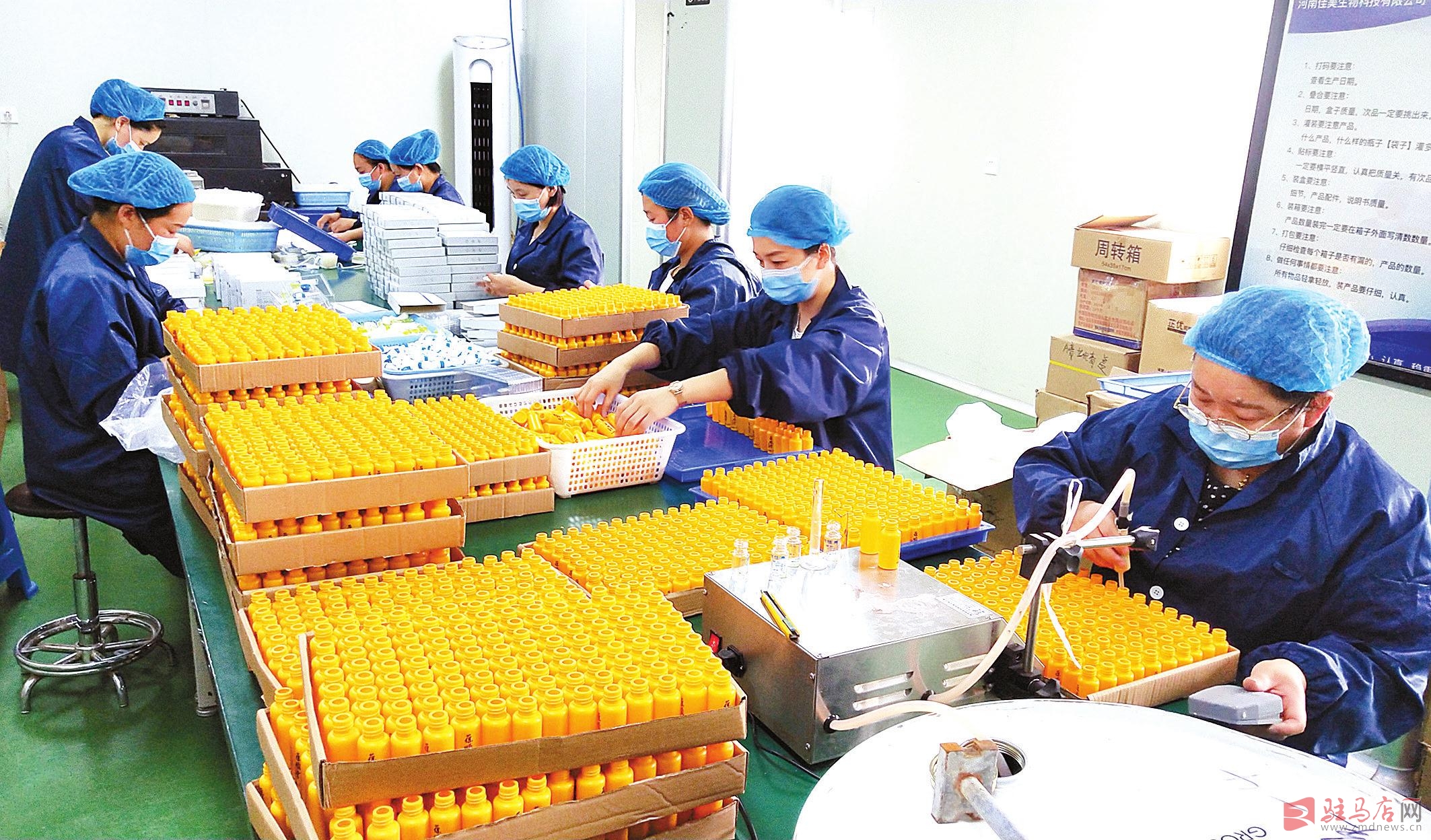 6月11日,在上蔡县塔桥镇关楼村中健产业园内的河南佳美生物科技有限公司车间内工人正在忙碌生产。