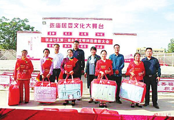 该街道党工委相关负责人说,张庙社区开展乡风文明评选表彰活动,及时挖掘移风易俗树立文明乡风方面的典型事迹,弘扬中华民族优秀传统文化,不断提升群众素质,树立文明乡风,掀起美丽乡村建设的新热潮。