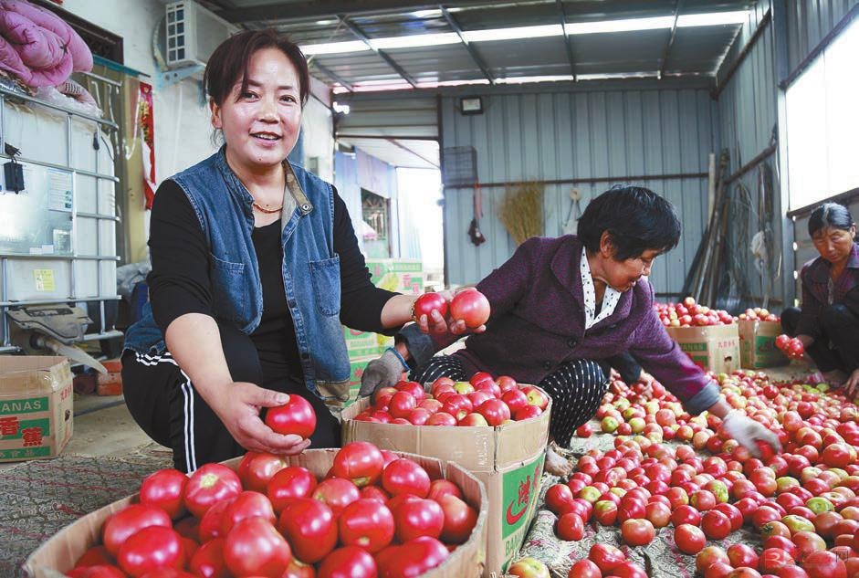 6月17日,在确山县双河镇凌楼村的专业合作社里,群众正在整理装箱新鲜的番茄。据了解,自脱贫攻坚工作开展以来,该镇积极引导在外创业成功人士返乡创业,积极参与建设产业扶贫合作社,为当地群众提供多种岗位,带动周边贫困户增收致富。