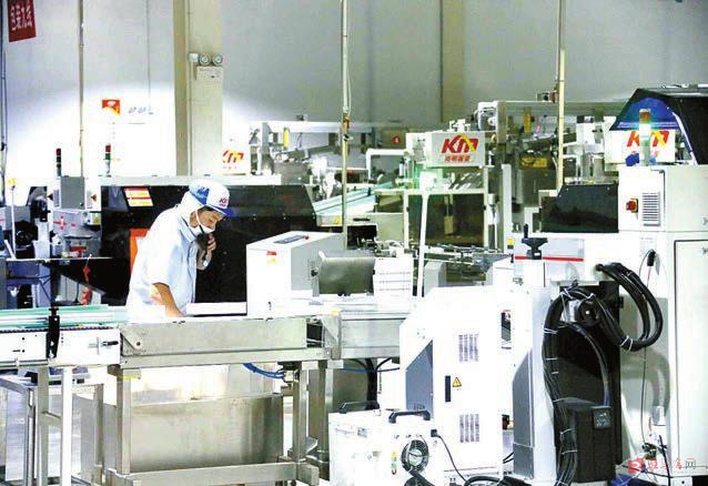 6月18日,遂平县克明面业股份有限公司工人在生产挂面。据悉,克明面业股份有限公司年产43.8万吨高档挂面项目,总投资7.6亿元,共建设20条生产线、3条波纹面生产线和1条刀削面生产线,目前一期10条挂面生产线已投产。