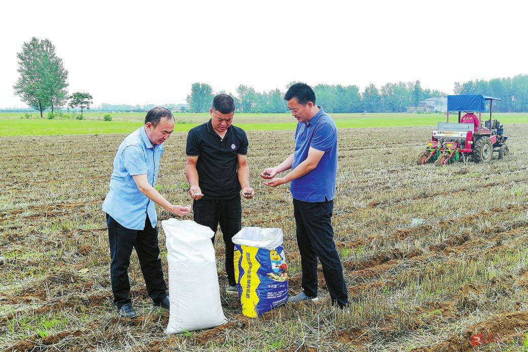 6月20日,上蔡县农业农村局植保站的农技人员在西洪乡寇庄村,对趁墒抢种玉米的种粮大户在选种、施肥、宽窄行播种、病虫害防治等方面进行技术指导,确保苗齐苗壮、稳产高产。近期以来,该县上百名农技人员深入田间地头,实地指导广大农民群众和农业经营主体做好田间管理,为秋粮丰收打下基础。
