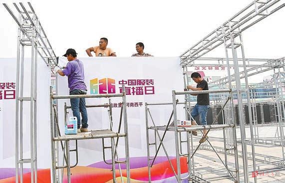 6月23日,笔者看到,位于西平县产业集聚区嫘祖服装新城智尚工业园的直播平台已搭建就绪,正在加紧收尾工作。