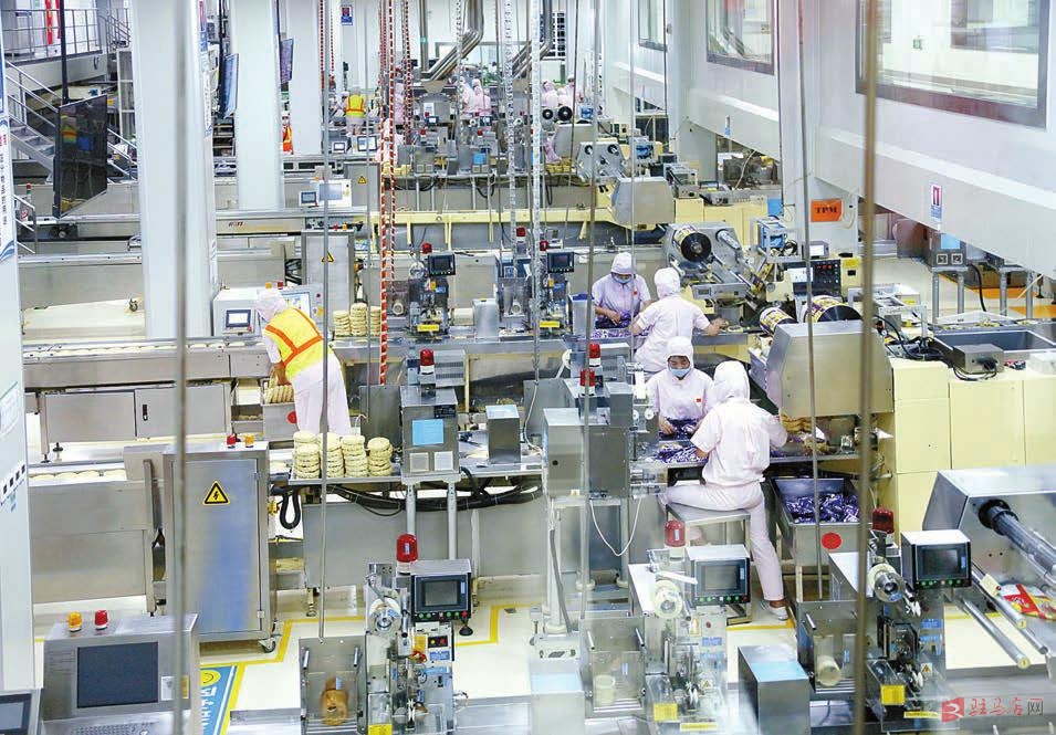 近日,在今麦郎(遂平)食品产业园全自动方便面生产线上工人正在生产。