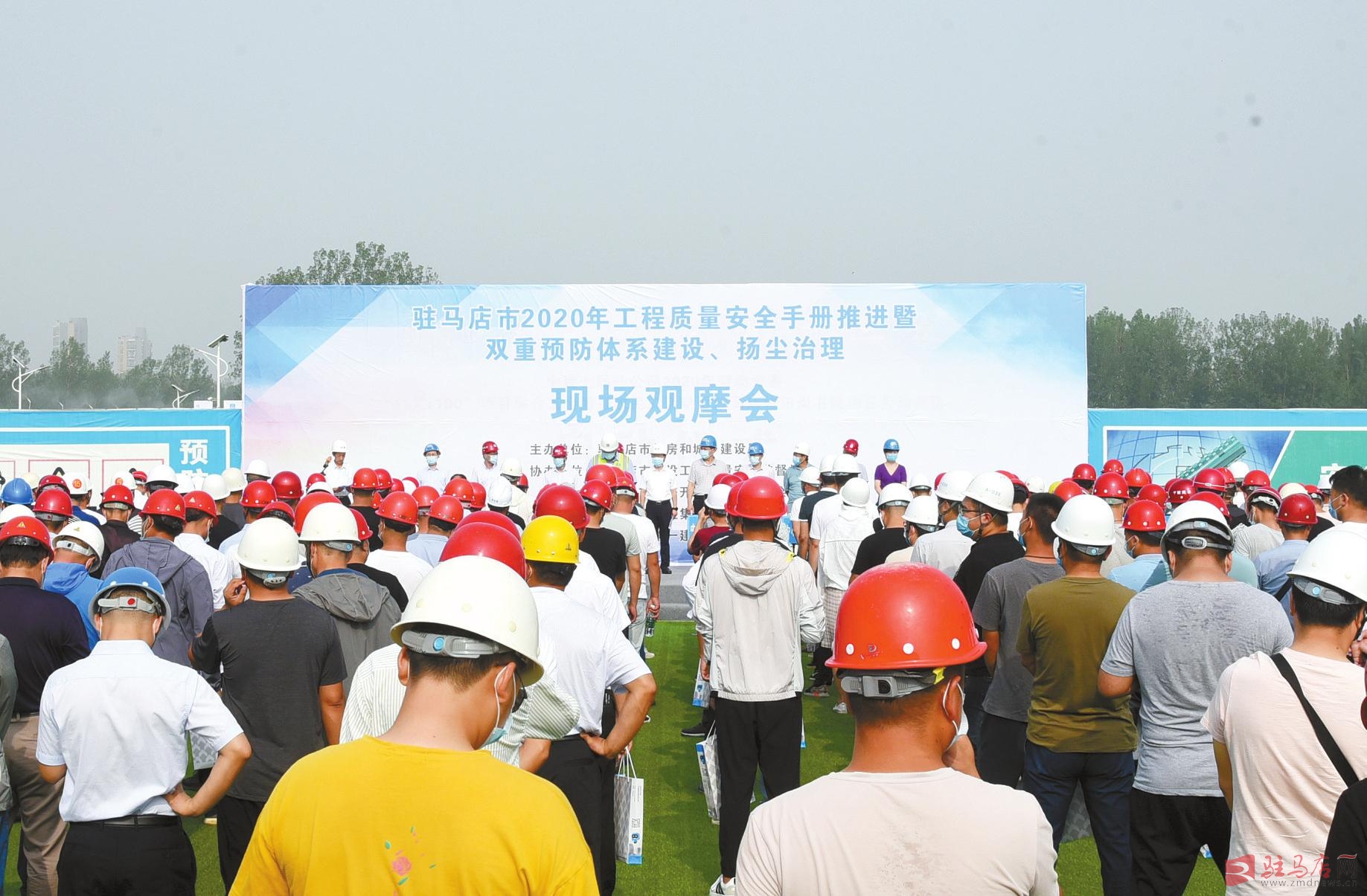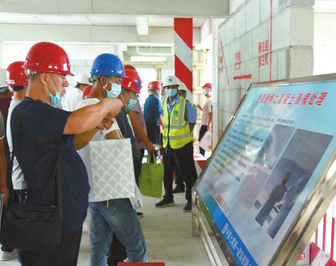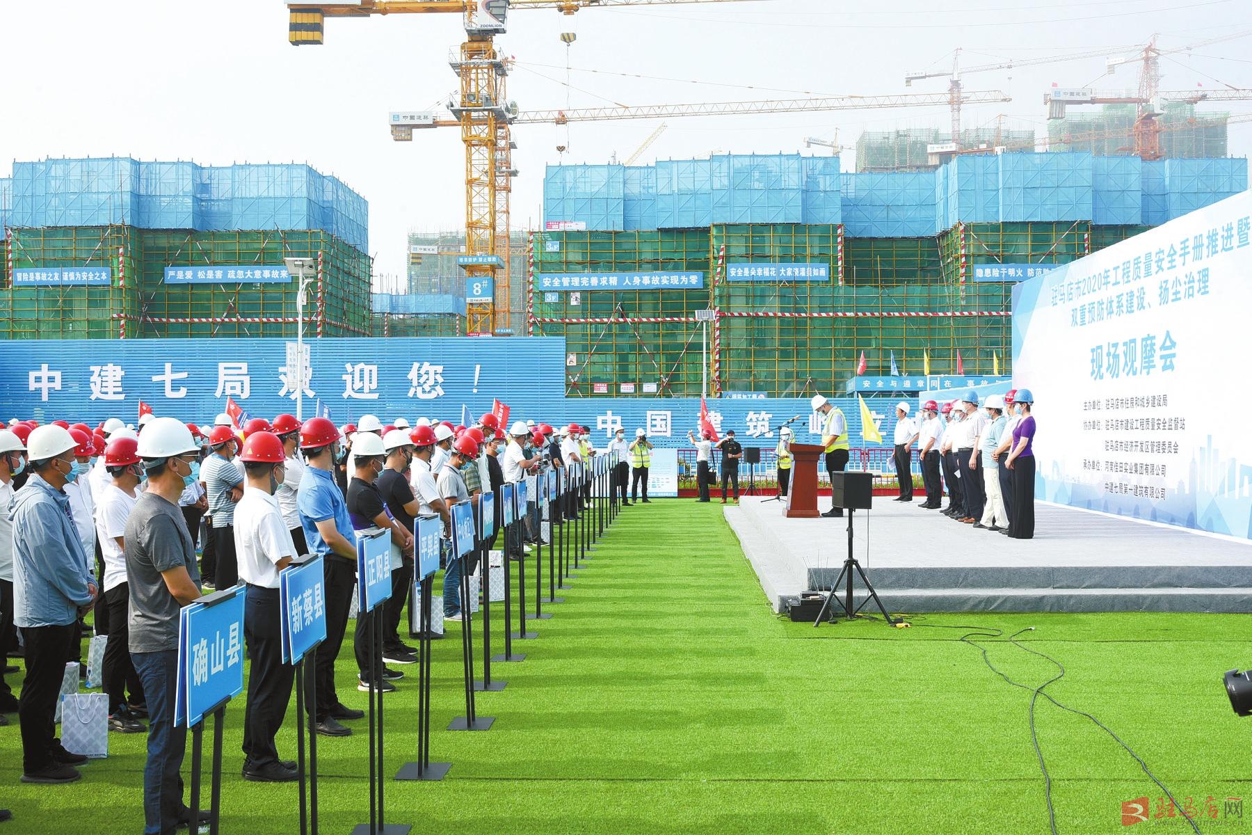高温酷暑浑不怕,千军万马鏖战急。7月10日,由市住建局主办,市建设工程质量安全监督站、经济开发区管委会协办,河南佳田实业集团有限公司、中建七局第一建筑有限公司承办的驻马店市工程质量安全手册推进暨双重预防体系建设、扬尘治理现场观摩会在驻马店广思教育综合体项目工地召开,来自全市各县区住建局、建设工程质量安全监督站负责人及施工企业项目经理、工程技术人员、监理人员等参加会议并进行了现场观摩。本次活动旨在观摩先进的施工技术和管理模式,通过相互交流、相互学习、相互借鉴的方式,对贯彻执行工程质量安全手册、双重预防体系建设和扬尘治理等工作进行再安排、再强调、再部署,切实提高全市在建项目质量安全施工标准化水平,推动全市建筑施工安全生产形势持续平稳运行。