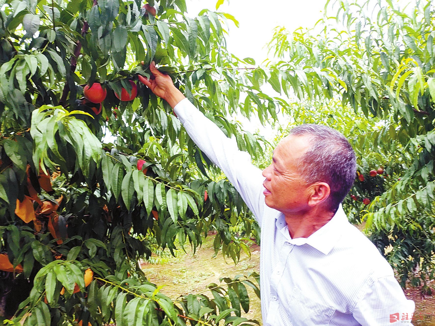 近日,位于驿城区老河乡东赵岗村的园鑫种植农民专业合作社的桃子熟了,桃园里有20多种不一样的品种,成熟期也都不一样,180天内供应新鲜的桃子陆续上市。桃园以牛粪为底肥,桃子风味独特,通过现场采摘、网上销售等,产品供不应求,年产值150多万元,带动30多户贫困户就业。记者田久摄