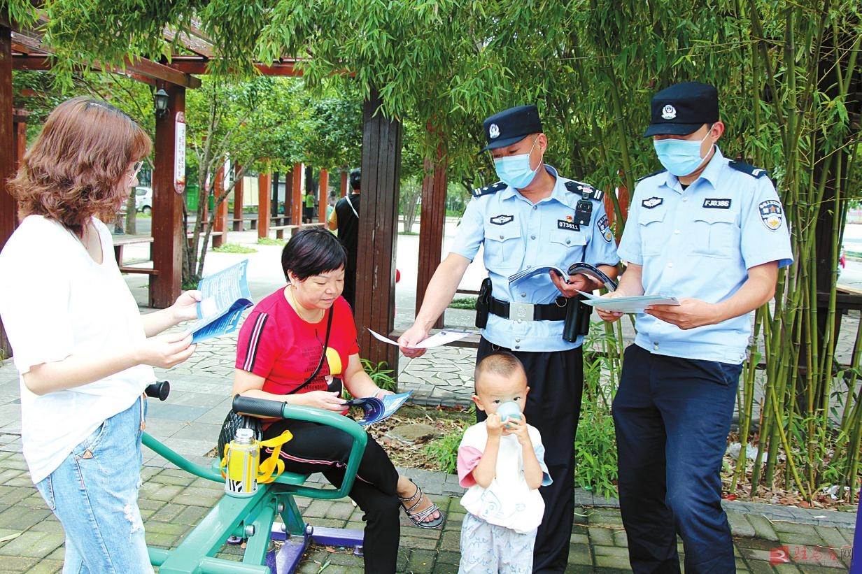 7月16日,市公安局老街分局民警在“大走访、大排查、大化解、大宣传”暨安全隐患动态清零百日行动中,深入社区向市民宣传安全防范知识,增强群众安全感和幸福感。记者吴胜军摄