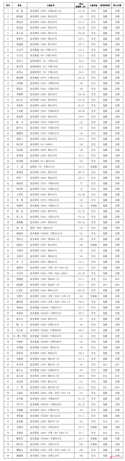 段晓培、张强等161宗用地单位: