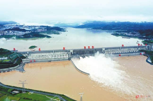 受强降雨影响,“长江2020年第2号洪水”于17日在长江上游形成,三峡水库入库流量快速上涨,18日8时达6.1万立方米/秒。这是今年入汛以来抵达三峡的最大洪水。洪水抵达时,三峡枢纽安全平稳运行。新华社发