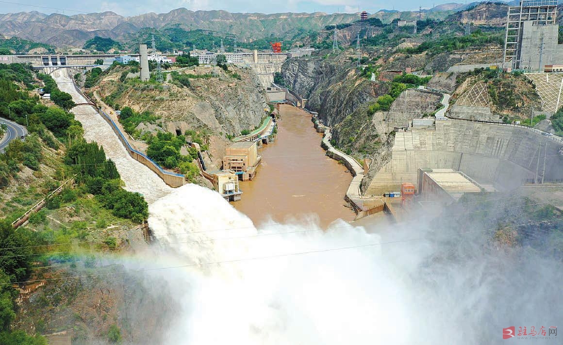 7月21日,刘家峡水库正在泄洪(无人机照片)。