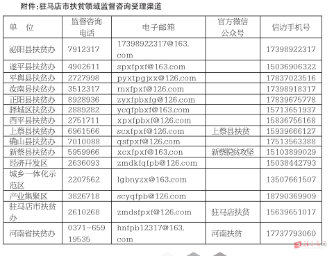 驻马店市扶贫领域监督咨询受理渠道的公告