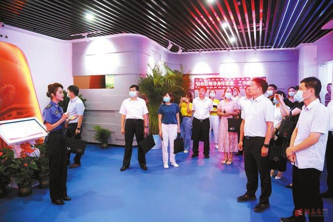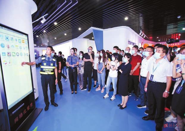 图①集中观摩开发区智慧城市应急管理指挥大厅。