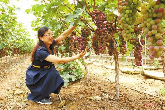 近年来,在驻村工作队的接力帮扶下,谭园村大力发展葡萄经济,引导农民规模种植数百亩扶贫葡萄树,果实成熟期可从7月到10月,亩产值4万元左右,走出了一条适合当地发展的绿色产业富民新路,葡萄成了精准扶贫的“致富果”。
