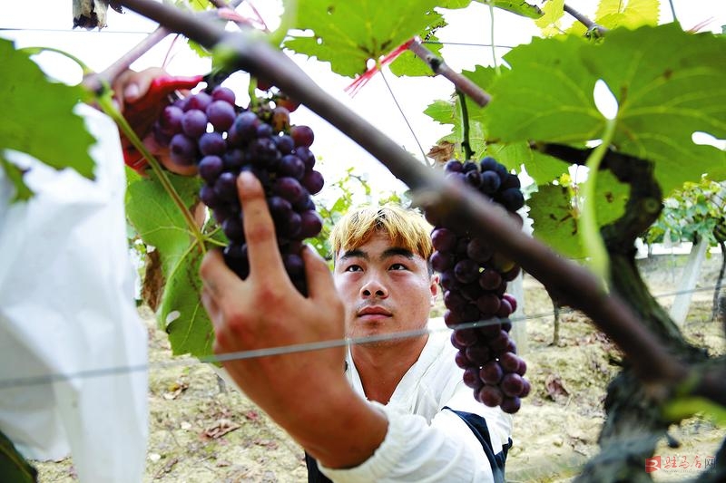 8月11日,位于泌阳县双庙街乡闫洼村的豫新牧业有限公司葡萄园内,工人正在采摘葡萄以供应市场。该公司通过“公司+农户+市场订单”的方式,先后带动周边109户贫困群众种养殖业的发展,户均增收3600多元。当地群众一步步走向脱贫致富的康庄大道。