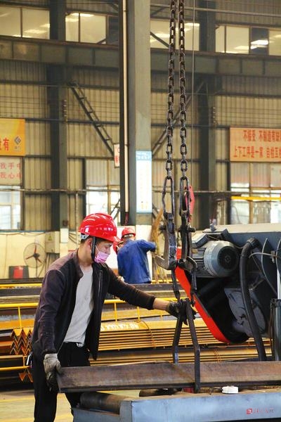 近日,位于西平县的河南鼎力杆塔公司接连不断在投标市场获得订单,其中5G通讯塔产品更是订单满满。图为该公司工人正在车间赶制订单。记者吴胜军摄