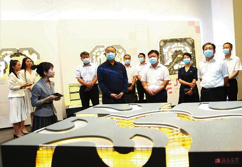 8月20日,市委书记陈星,市委副书记、市长朱是西率团到建业集团考察。图为陈星、朱是西一行在建业集团董事长胡葆森的陪同下参观建业·J18城市展厅。记者 弓华静 摄